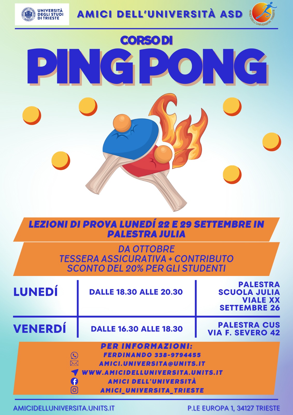 Il tennistavolo, più popolarmente conosciuto come ping pong, è uno degli sport di maggior diffusione nel mondo ed è una specialità olimpica, nato nel 1884. Può essere svolto a scopo ricreativo a qualsiasi età e si può giocare in luoghi ristretti, al chiuso e all'aperto.